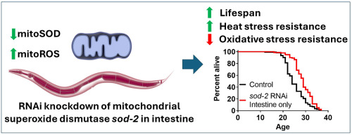 Additionally, intestine-specific sod-2 knockdown was associated with increased resistance to heat stress while simultaneously reducing resistance to oxidative stress, further highlighting the complex interplay between ROS and cellular adaptation mechanisms.