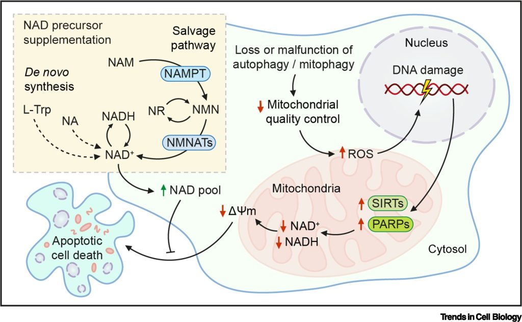 Emerging research highlights the critical interplay between NAD metabolism and autophagy in cellular health, aging, and disease. Both mechanisms serve as essential regulators of metabolic homeostasis and are vital for alleviating cellular stress. However, their decline with age contributes to age-related pathologies, making them promising targets for therapeutic intervention.